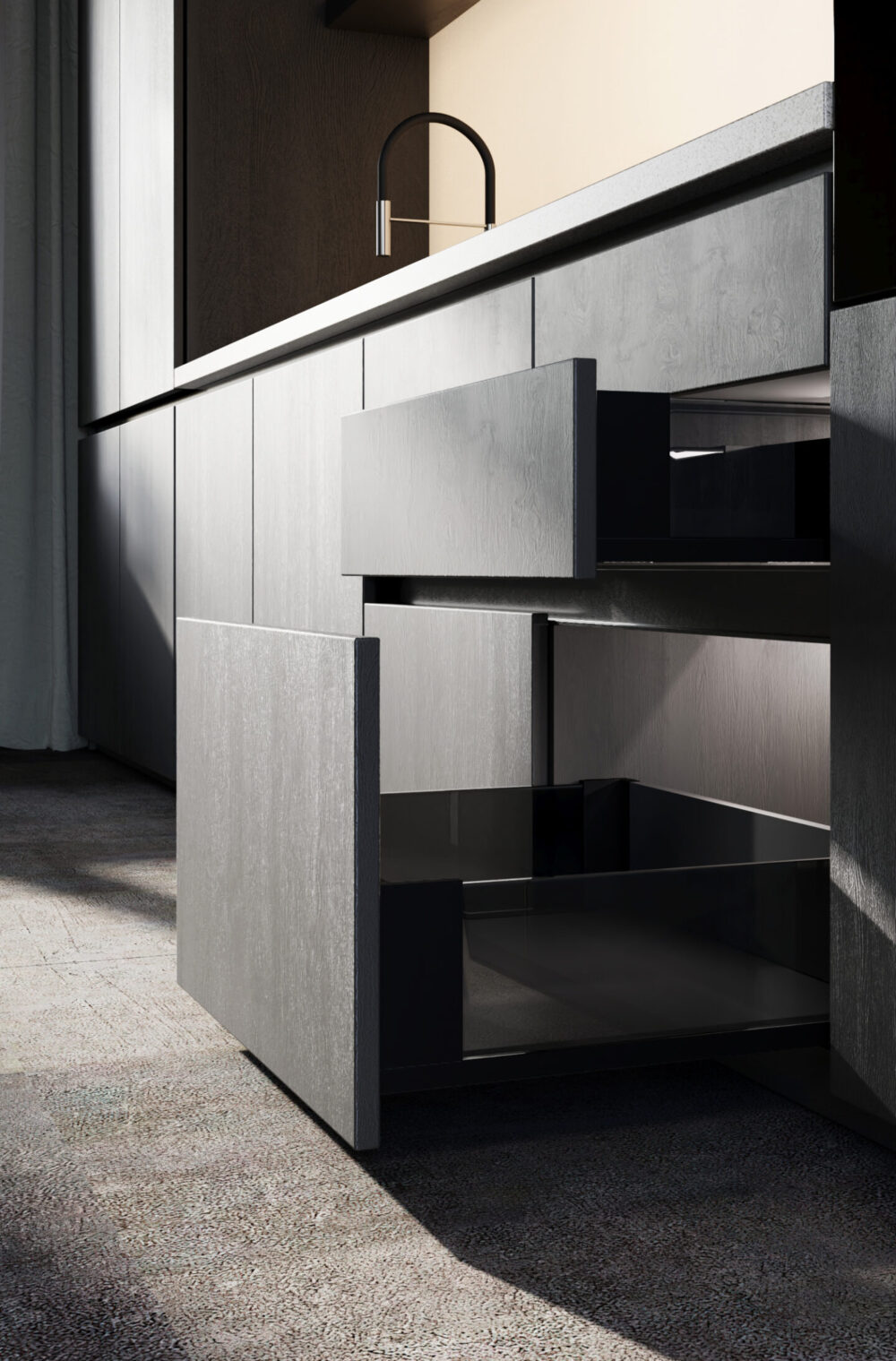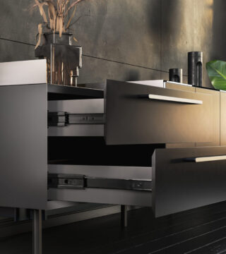W skład kolekcji wchodzą funkcjonalne kosze cargo, dzięki nim zagospodarujemy przestrzenie między dolnymi szafkami kuchennymi.