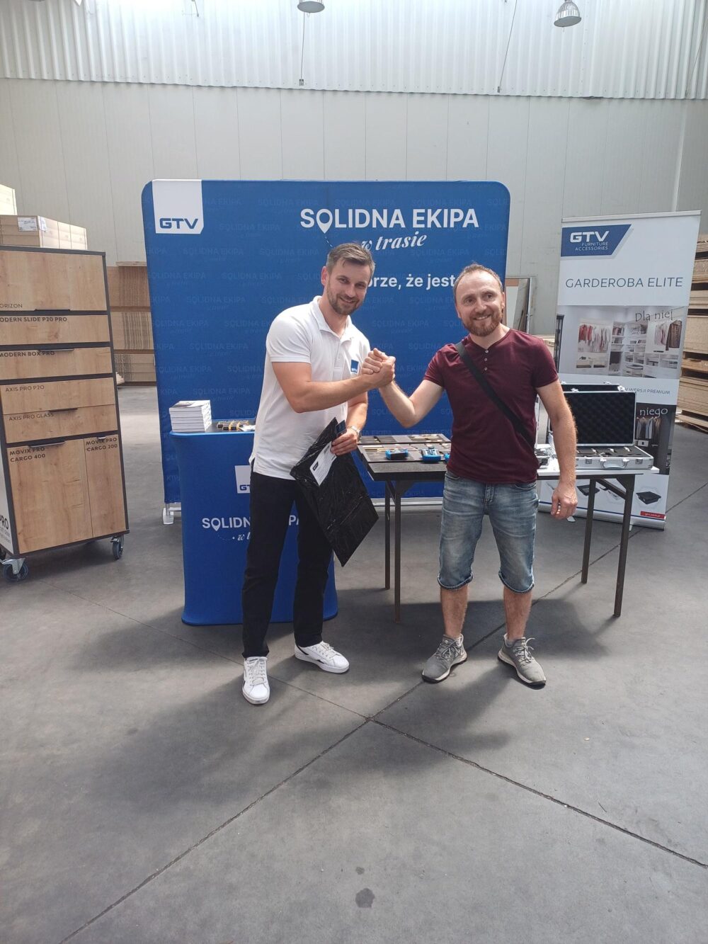 Waszym zadaniem będzie złożenie szuflady oraz zamontowanie zawiasu GTV, w jak najkrótszym czasie, podczas konkursu zorganizowanego w trakcie wydarzenia.