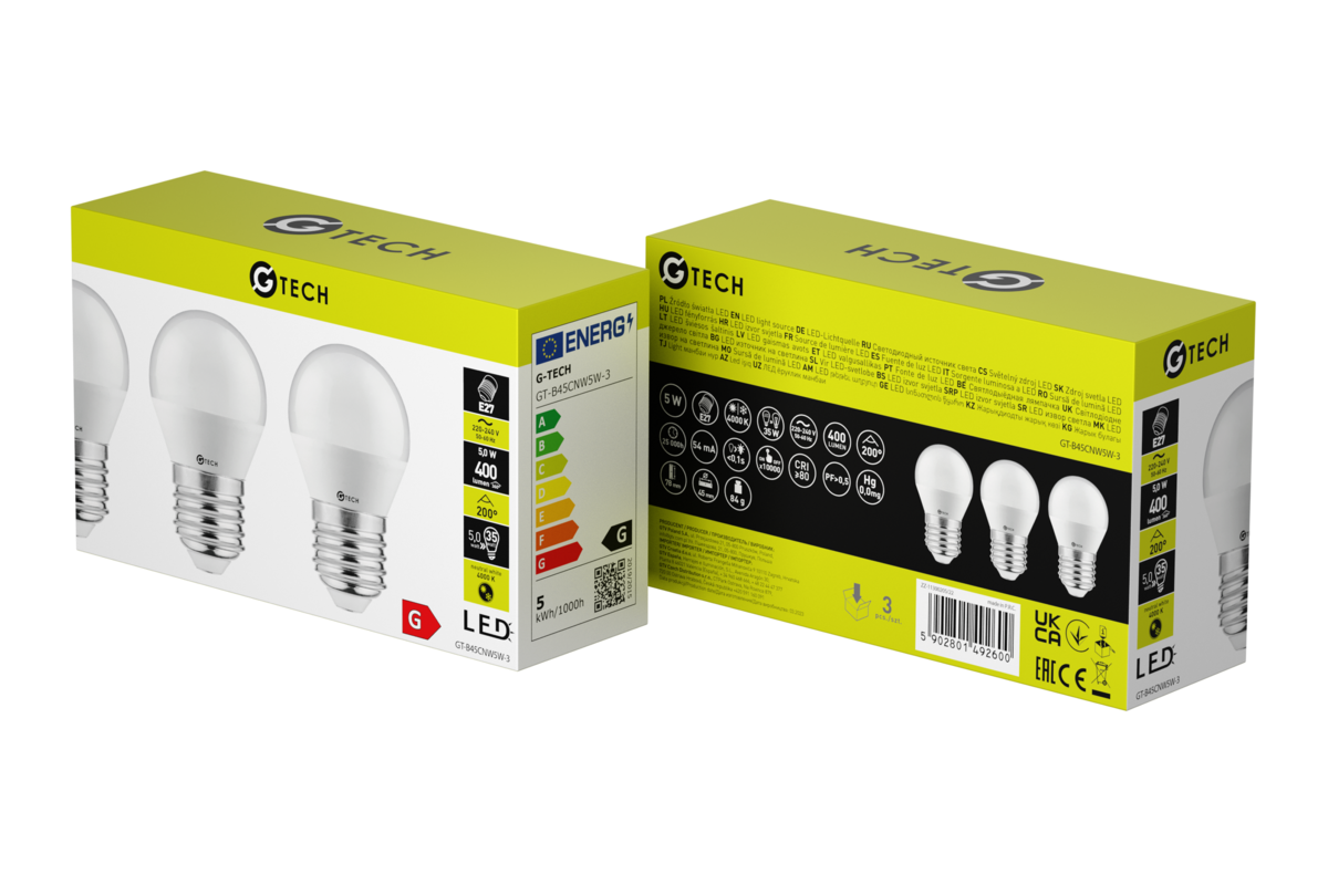 G-TECH LED Světelný Zdroj, 3ks, A-G, B45, 4000K, E27, 5,0W, AC220-240V, 200°, 400lm, 54mA