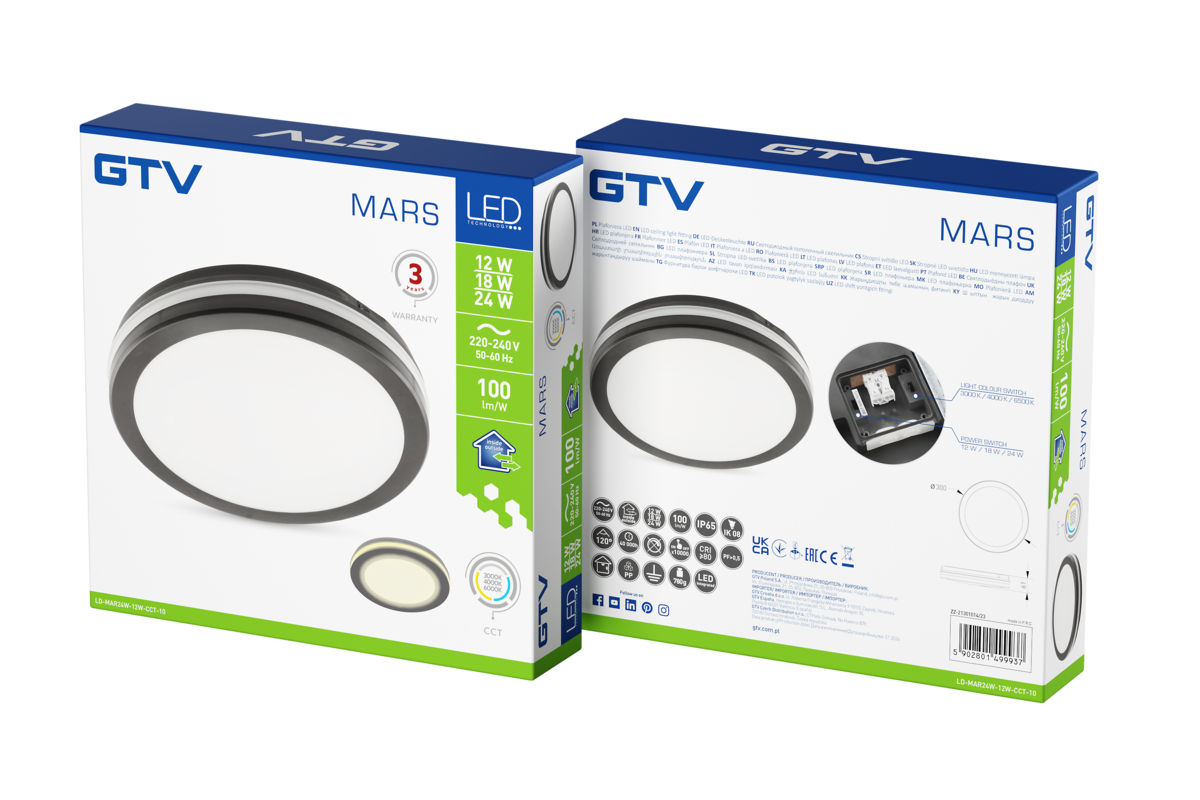 LED svítidlo MARS se vyznačuje pokročilými možnostmi personalizace, které umožňují přizpůsobit výkon i teplotu barev světla individuálním potřebám uživatele. Díky třístupňové regulaci výkonu (12, 18, 24 W) a teploty chromatičnosti (2000 K, 4000 K, 6500 K) vám toto svítidlo umožní vytvořit ideální světelné podmínky v jakémkoli prostředí, a to jak v interiéru, tak v exteriéru.