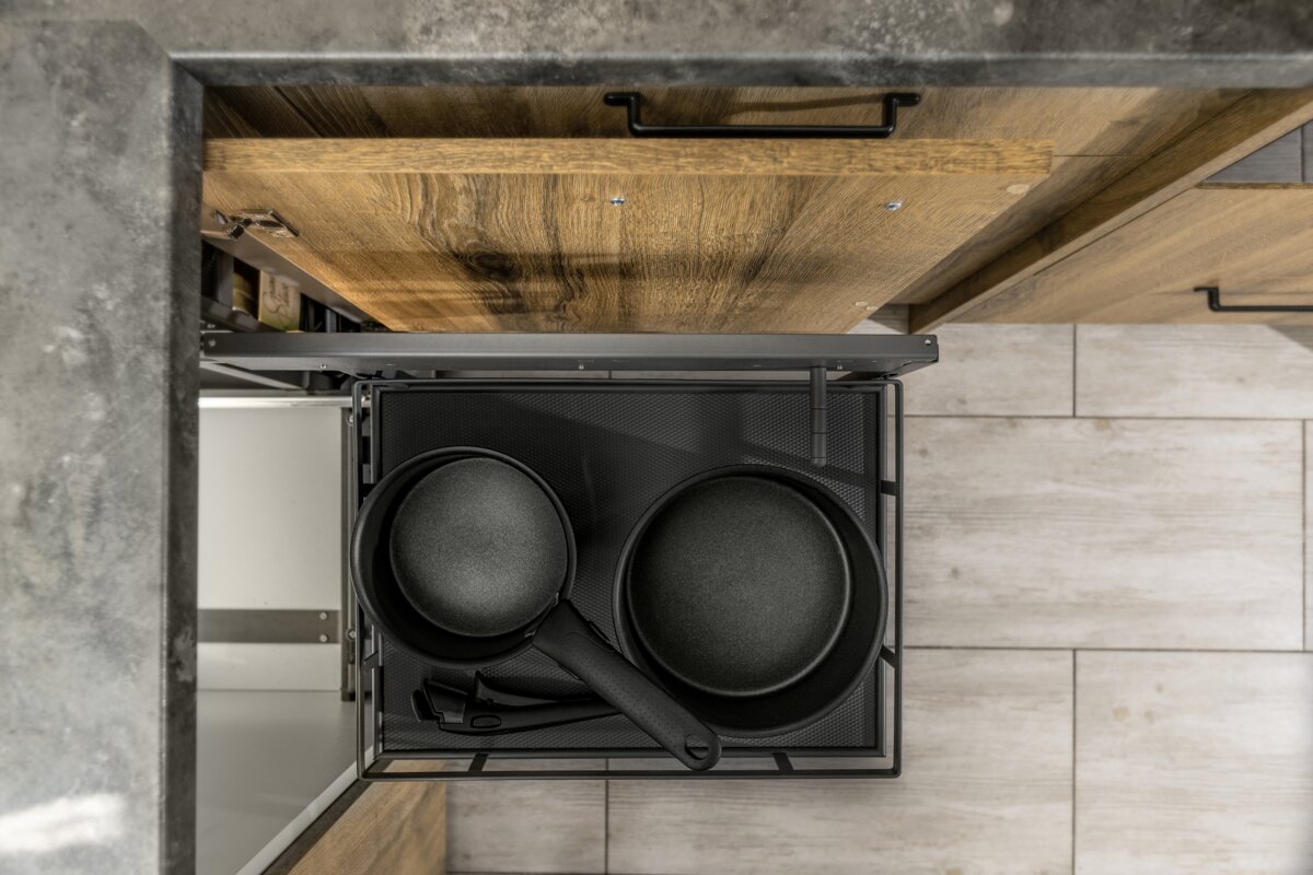 - tři univerzální barvy: bílá, antracitová a černá může být snadno přizpůsobena jakékoli kuchyňské zásuvce;