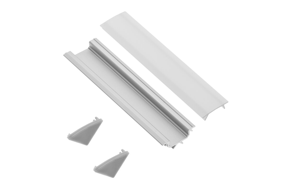 Sada obsahuje hranatý profil, kryt, který dodává celé konstrukci estetický vzhled, a dvě koncovky, které uzavírají konce profilu bezpečně a esteticky. Díky tomu dosáhneme nejen funkčnosti, ale i estetického provedení každého rohu.
