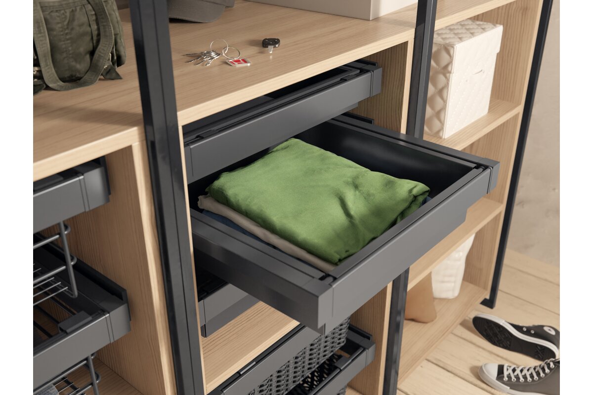 Zásuvka Elite s kovovým košem 700 mm s funkcí tichého zavírání, šedá antracitová