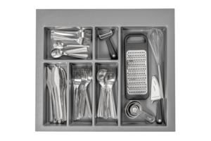 Zásuvkové vložky Axispace vyrobené z vysoce kvalitního plastu vám umožní efektivně spravovat interiéry kuchyňských zásuvek. Díky speciálním váhám máme možnost správně oddělit a uspořádat lžíce, nože, vidličky a další užitečné kuchyňské doplňky. Vizuální efekt však není jedinou výhodou tohoto produktu. Zásuvkové vložky jsou velmi prostorné a praktické a umožňují vám mít vše na dosah ruky, což je nesmírně důležité pro každého člověka, který se podílí na vaření. Nabídka zahrnuje pořadače různých velikostí (340-840 mm).