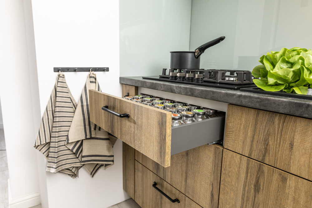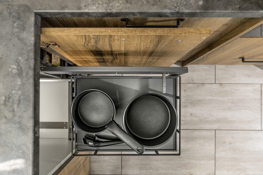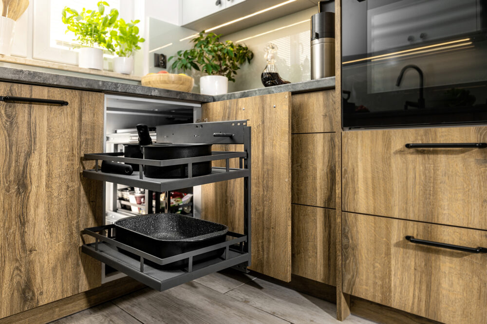 Produkte GTV: Schubladen Axis PRO, Korb Cargo Movix PRO, Magic Corner ausziehbar Movix PRO, Griff OTTO, Griff VENICE.