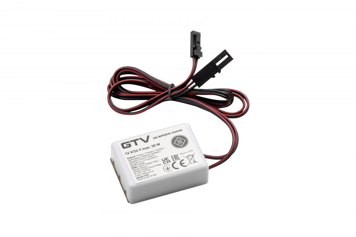 Der Schalter wird unter der Arbeitsplatte mit einer maximalen Dicke von 40 mm platziert. Das Ein- und Ausschalten besteht darin, die Arbeitsplatte auf der Höhe der Installation zu berühren, und das Dimmen erfolgt, indem Sie die Hand lange an dieser Stelle halten. Eine sehr clevere Lösung für alle, die Minimalismus mögen. Das Produkt wird ohne Netzteil verkauft. Einmal montiert, ist der Sensor völlig unsichtbar.