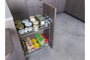 Die Lastenkörbe der Serie MOVIX sind ein funktionales und modernes Auszugssystem mit Regalen, mit dem Sie den Platz der unteren Küchenschränke perfekt verwalten können. Die MOVIX-Serie wurde entwickelt, um eine praktische Speisekammer in der Küche zu schaffen, ideal für die Aufbewahrung von Flaschen und Küchenzubehör, die es wert sind, immer griffbereit zu haben. Die Lastenkörbe der Serie MOVIX passen in Schränke mit Außenbreiten: 150, 200, 250, 300 mm. Hochwertige Verarbeitung und raffinierte Details sorgen für Langlebigkeit, Stabilität, bequemen Zugang zu den Produkten und ein ästhetisches Erscheinungsbild, das perfekt zu modernen Küchenmöbeln passt. Die maximale Belastung beträgt 15 kg, was ihn auch bei intensiver Nutzung zu einer zuverlässigen Lösung macht. Die gesamte Serie ist in drei zeitlosen Farben erhältlich: Chrom, Weiß und Anthrazit.