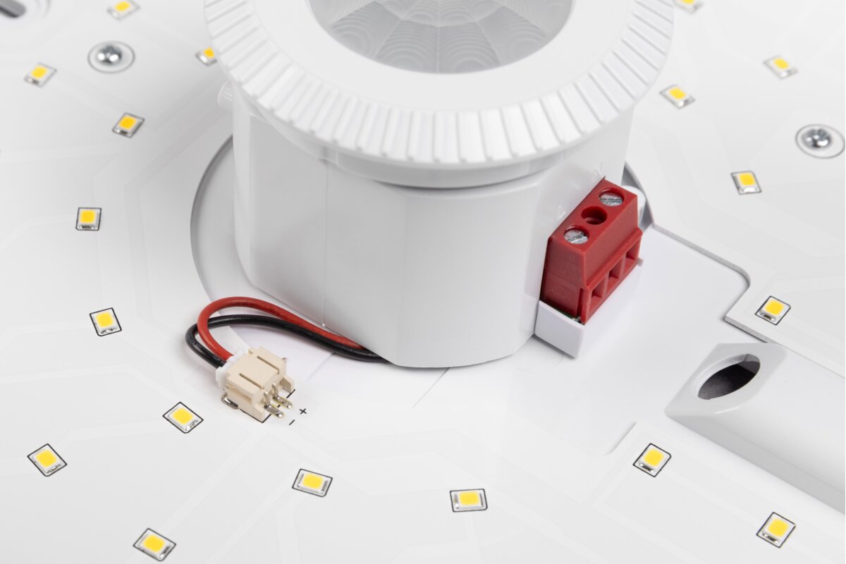 PIR - passiver Bewegungssensor, der auf Infrarotstrahlung reagiert. Es erzeugt natürliches Licht für das Auge auf einer Höhe von 4000K und CRI>80, die Konzentration und Arbeit fördert. IP20 ist eine dedizierte Leuchte für die Installation in Räumen mit normaler Luftfeuchtigkeit. Die Leuchte hat eine Lebensdauer von 40.000 Stunden und mindestens 20.000 Ein-/Ausschaltzyklen mit einer dreijährigen Garantie. Klare Anweisungen ermöglichen eine einfache Installation ohne den Einsatz spezieller Werkzeuge.