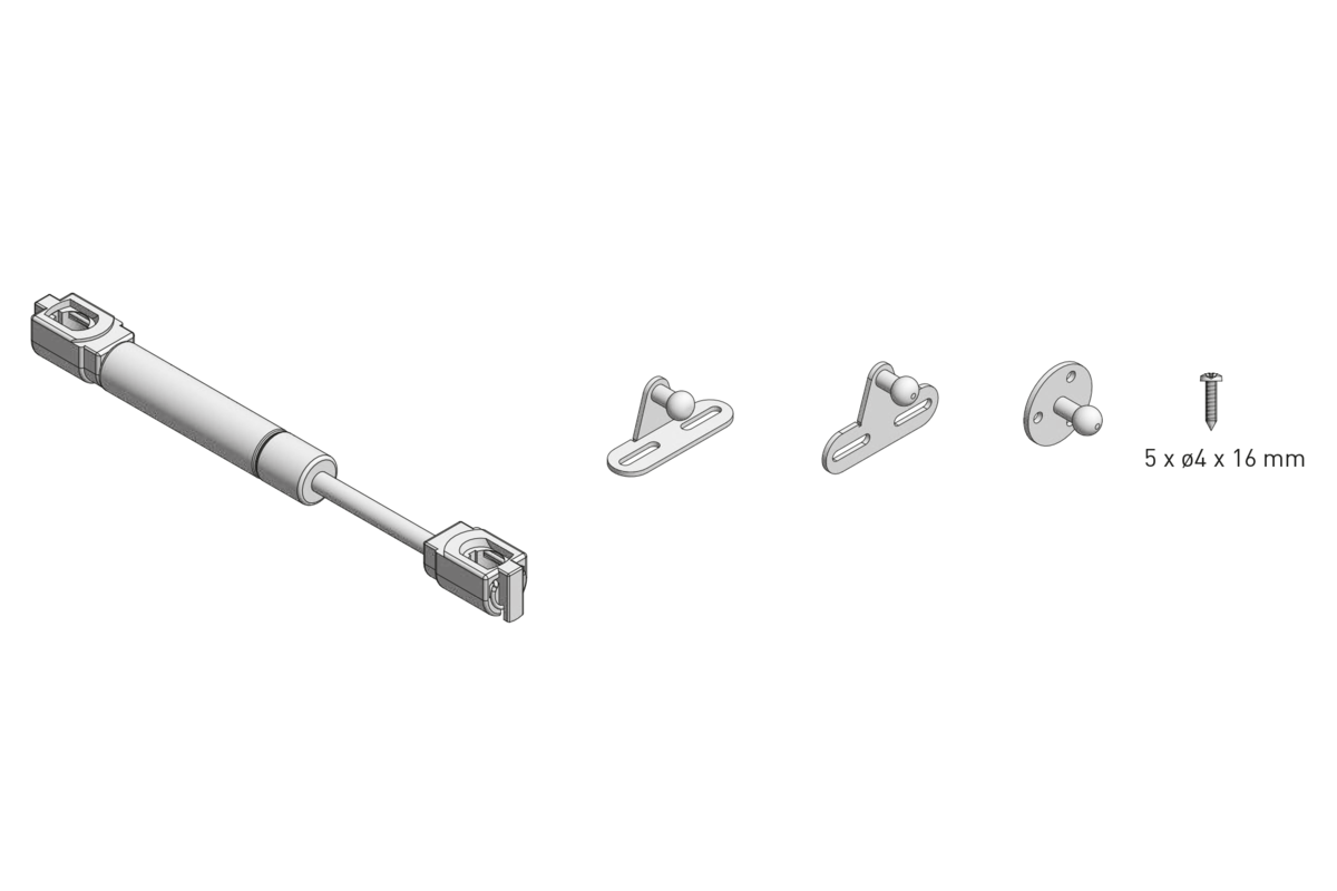 Mit dem Gaslift können Sie funktionale und moderne Oberschränke gestalten. Der Lift sorgt für Fließfähigkeit und Dämpfung beim Öffnen der Fronten. Sein Mechanismus verhindert das träge Absinken der Front. Aus grauem Stahl. Der ungefähre Öffnungswinkel beträgt 75-100° , abhängig vom verwendeten Scharnier. Es kann sowohl für massive Fronten als auch für Fronten aus Aluminiumprofilen verwendet werden (INDIZES -02-N02 BEINHALTEN KEINE MONTAGE AM ALUMINIUMRAHMEN). 2 Hubkraftoptionen verfügbar . Während der Montage erfordert es die Verwendung von Scharnieren.