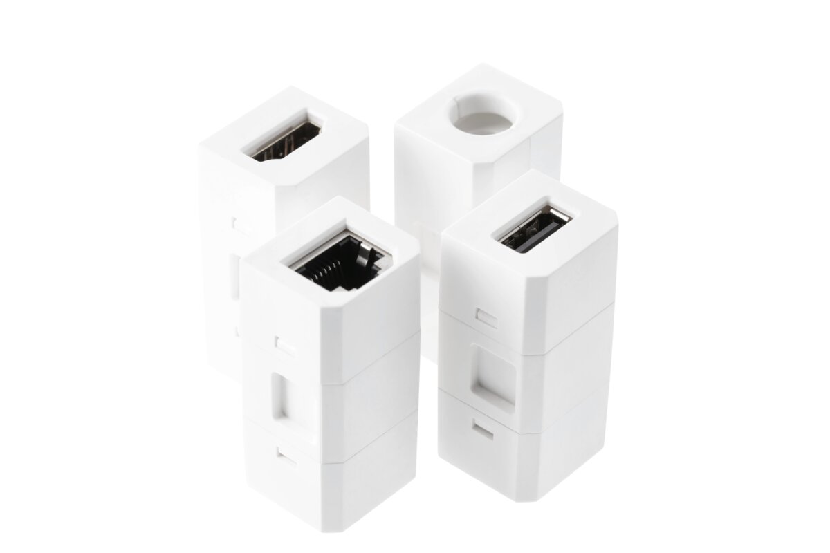 Interchangeable USB-A, HDMI, RJ-45 ports;
