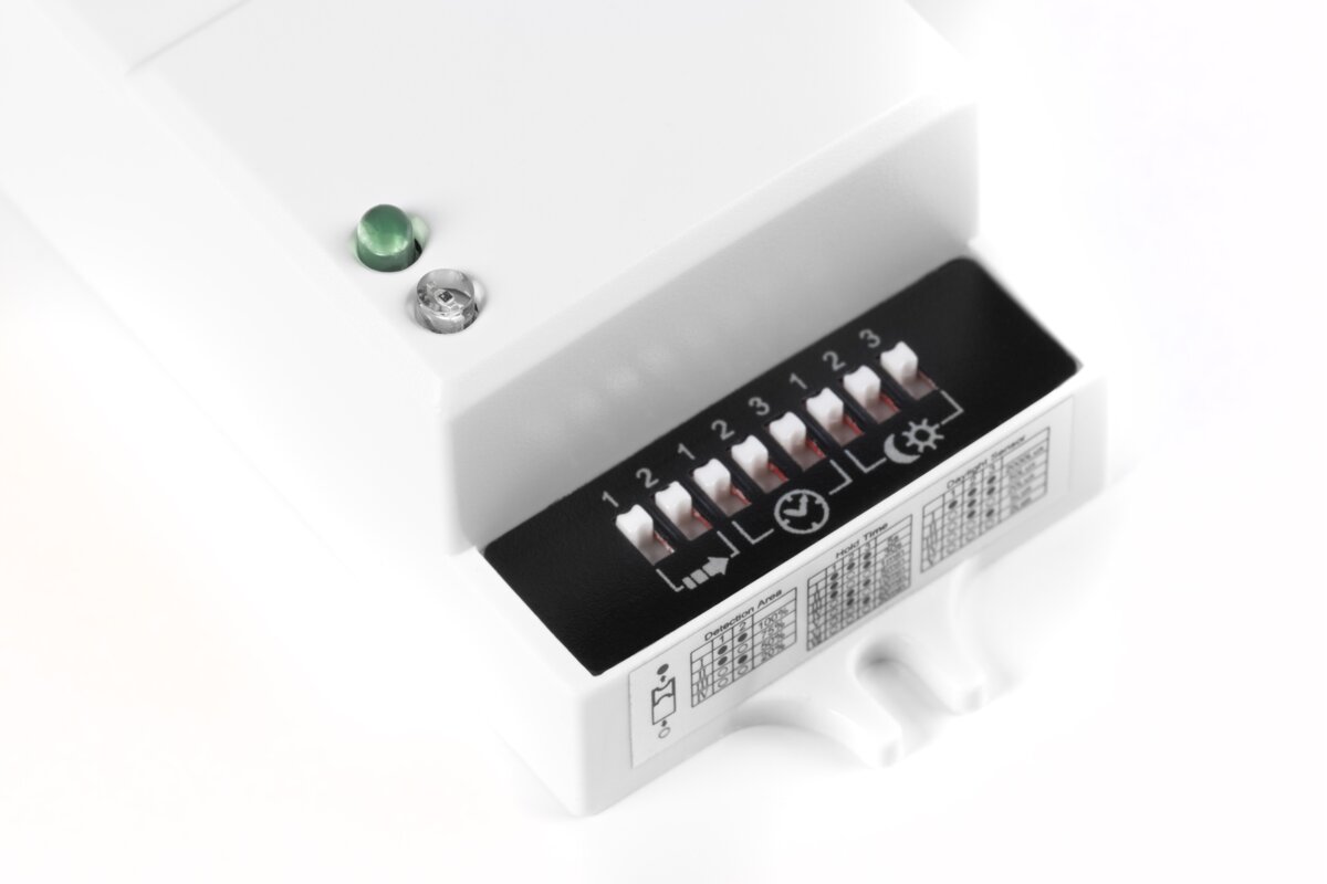 - Daylight Sensor: The integrated daylight sensor, also adjustable via DIP switches, allows the sensor to automatically adjust to the prevailing light conditions, with an adjustment range from 3 to 2000 lux. It is a solution that ensures that the lighting only turns on when it is really necessary, which contributes to energy savings and prolongs the life of the luminaires.