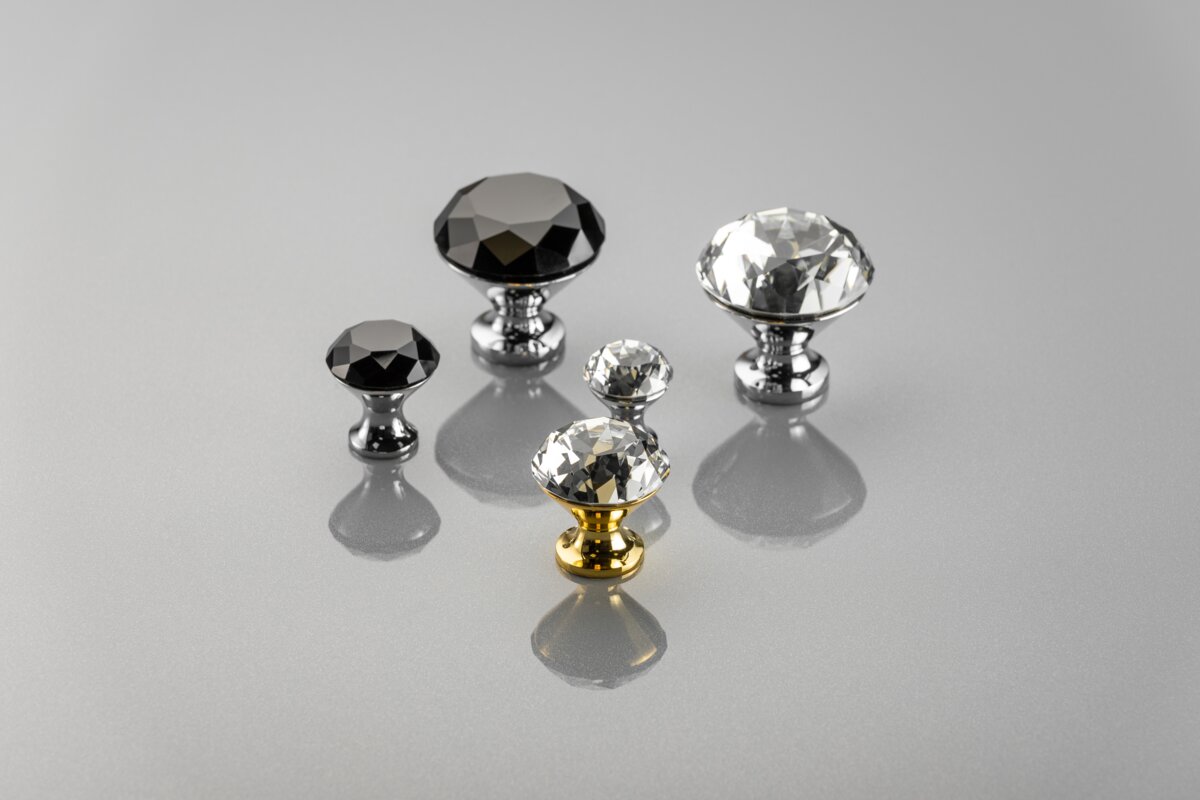 Elegant knobs in the style of glamour will look beautiful on the chest of drawers, bedside table and in the women's wardrobe. GZ-CRPB knobs are distinguished by an aesthetic finish, giving the interior a bit of luxury and a unique look. The knob is distinguished by high-quality glass workmanship, which in combination with the nave base guarantees high gloss and fully deserves to be called a premium product. The collection is available in four sizes and several color options.