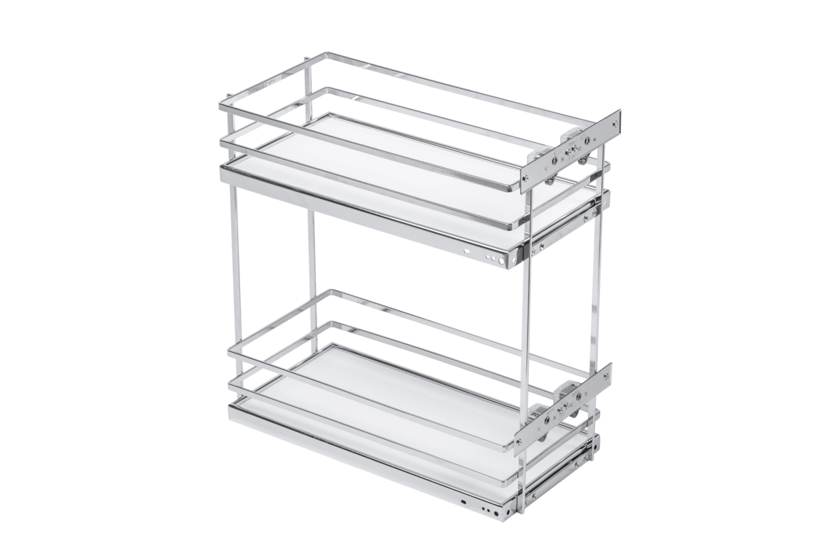 Kitchen furniture equipped with cargo, i.e. a retractable system with shelves, is excellent for storing more products and food supplies. They take up relatively little space, but in themselves they are very capacious. Thanks to cargo, every item has its place, and the kitchen is in order. Cargo is equipped with a white anti-slip mat that matches white kitchen furniture. A wide range of sizes: 150, 200, 300, 400 and 500 mm makes the system offered by GTV can be adapted to almost any bay.