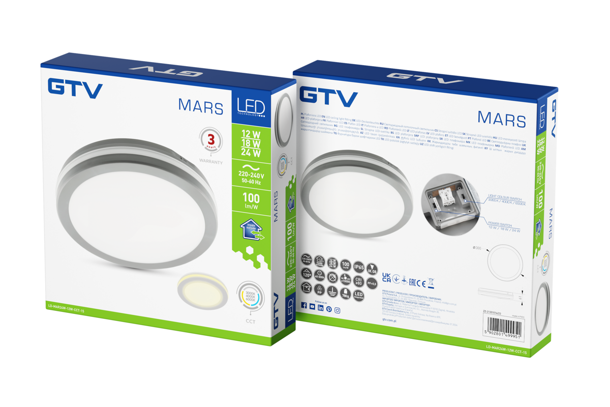 The MARS LED luminaire is distinguished by advanced personalization options, allowing you to adjust both the power and color temperature of the light to the individual needs of the user. With three-level control of power (12, 18, 24 W) and colour temperature (2000 K, 4000 K, 6500 K), this luminaire allows you to create ideal lighting conditions in any environment, both indoors and outdoors.