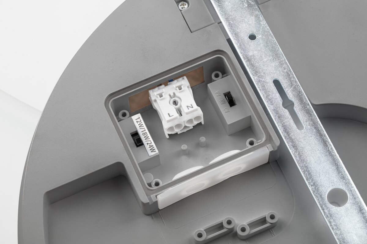 Adjusting the power and colour temperature is a simple process, thanks to two switches located on the back of the luminaire. For easy adjustment, the MARS LED luminaire is designed to be easily removed from the mounting bracket using two latches, making adjustment quick and hassle-free.