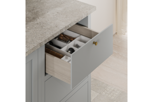 Slide type: bottom mount. It is characterized by a hidden attachment to the bottom of the drawer, allowing you to maintain the high aesthetics of the open drawer;