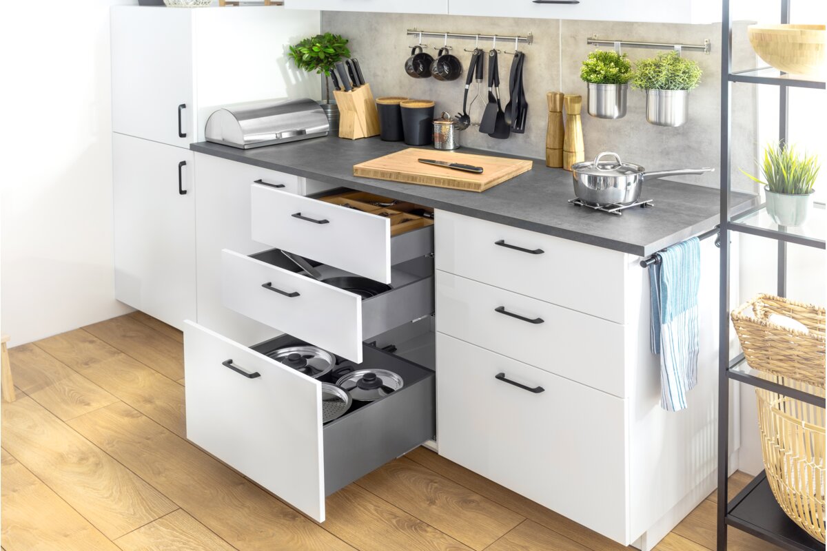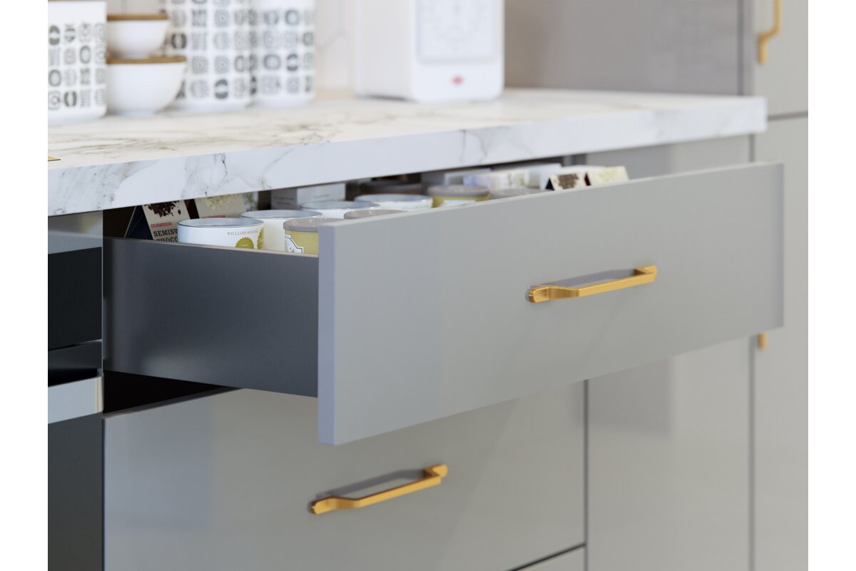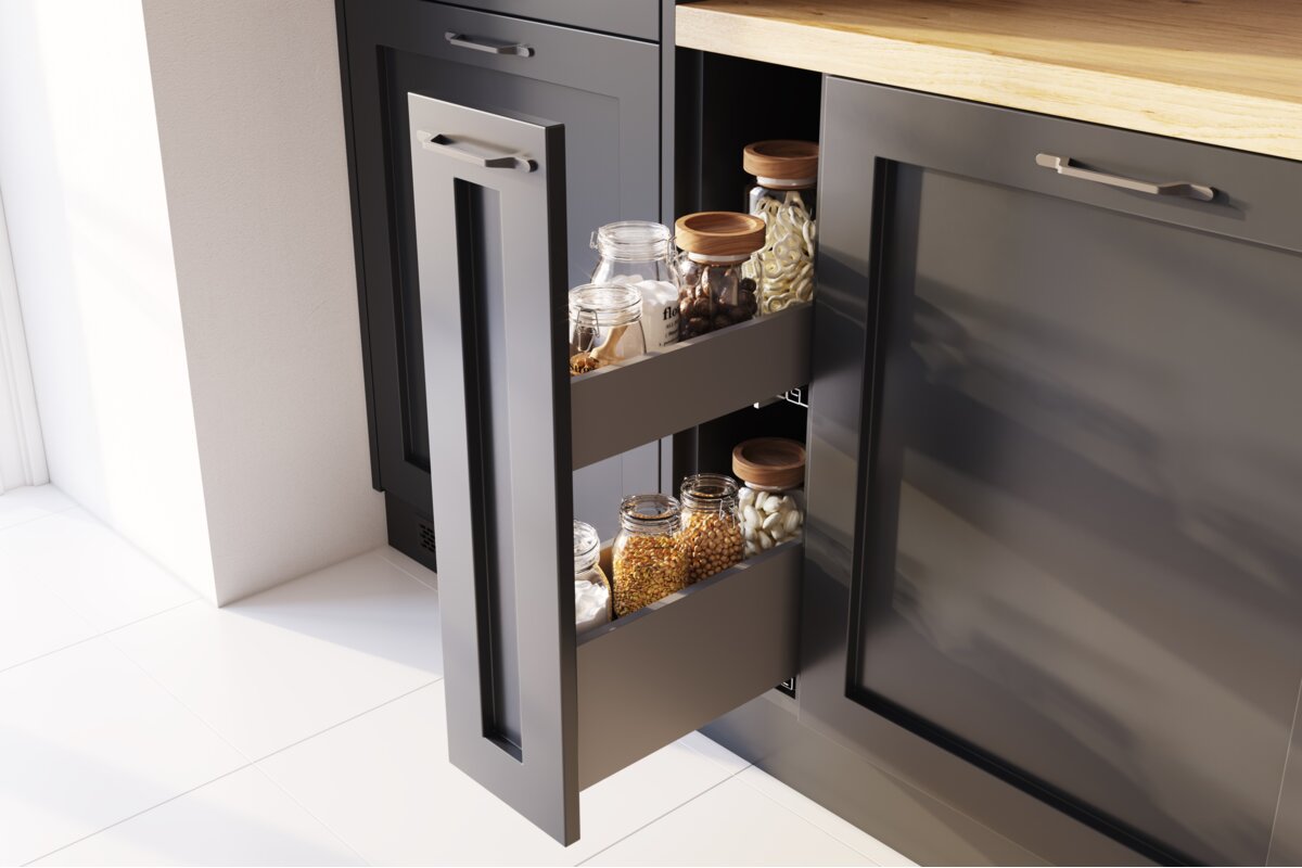 Convenient and practical Axis Pro oven drawer for kitchen accessories. The drawer side panel, only 14 mm wide, gives the drawer a simple and modern look.
