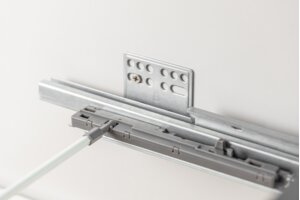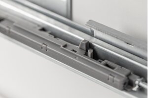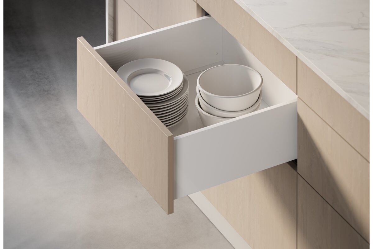 The Axis Pro Push to Open drawer has a high durability certified for 60,000 cycles. It provides full extension in lengths from 300 to 550 mm, and the push to open mechanism with synchronization of opening guarantees smooth opening of the drawer by pressing on any place on the front of the drawer. 5 height variants will make it perfectly fit into your kitchen, and the side of the drawer with a width of only 13 mm allows maximum use of the internal space of the drawer. The load on the drawer allows you to place up to 40 kg of various products in it. Installation of the drawer is easy thanks to the convenient adjustment on the inside of the drawer, tilt adjustment and horizontal adjustment in the range of +- 2 mm.