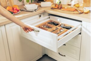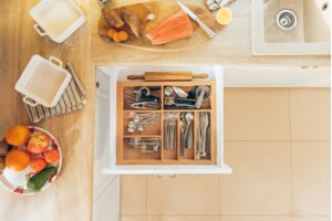 - a diverse range of solutions for the organization of the internal space of the drawer: transverse rails, transverse strips, compartments, CUSTOMI cutlery inserts, waste binders, AXISPACE anti-slip mats .