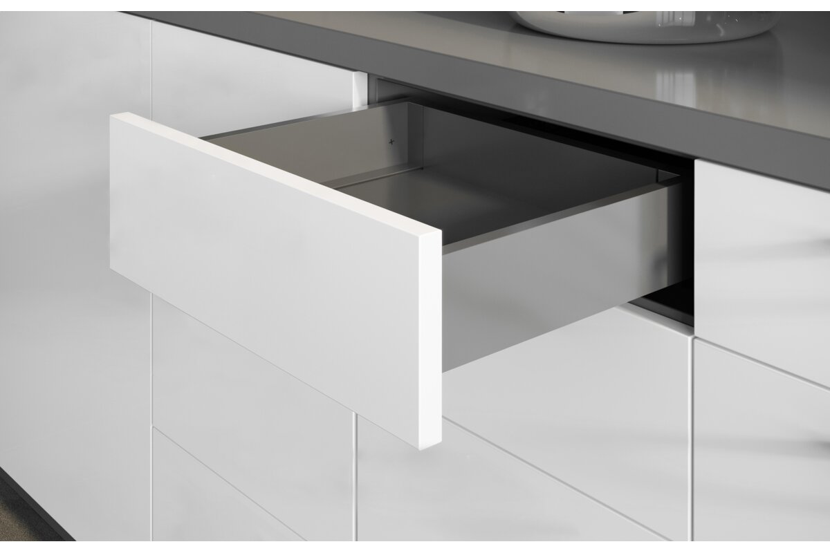 | Contenido del kit | 2 uds. guía (L + P), 2 uds. cajón lateral (L + P), 2 uds. Conector de pared trasera (L + P), 2 uds. Conector frontal, 2 uds. Tapa |