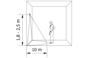 - Technologie micro-ondes : détection de mouvement à une distance allant jusqu’à 8 mètres et à un angle de 180°, également à travers des obstacles tels que des portes.