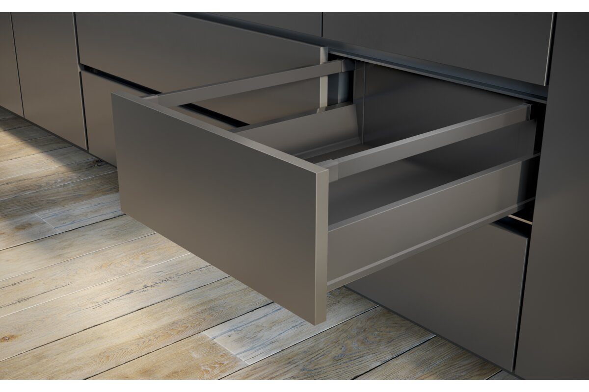 • 4 variantes de hauteur (84, 135, 167, 199 mm) pour tiroirs universels à utiliser avec mortaise et façade superposée;