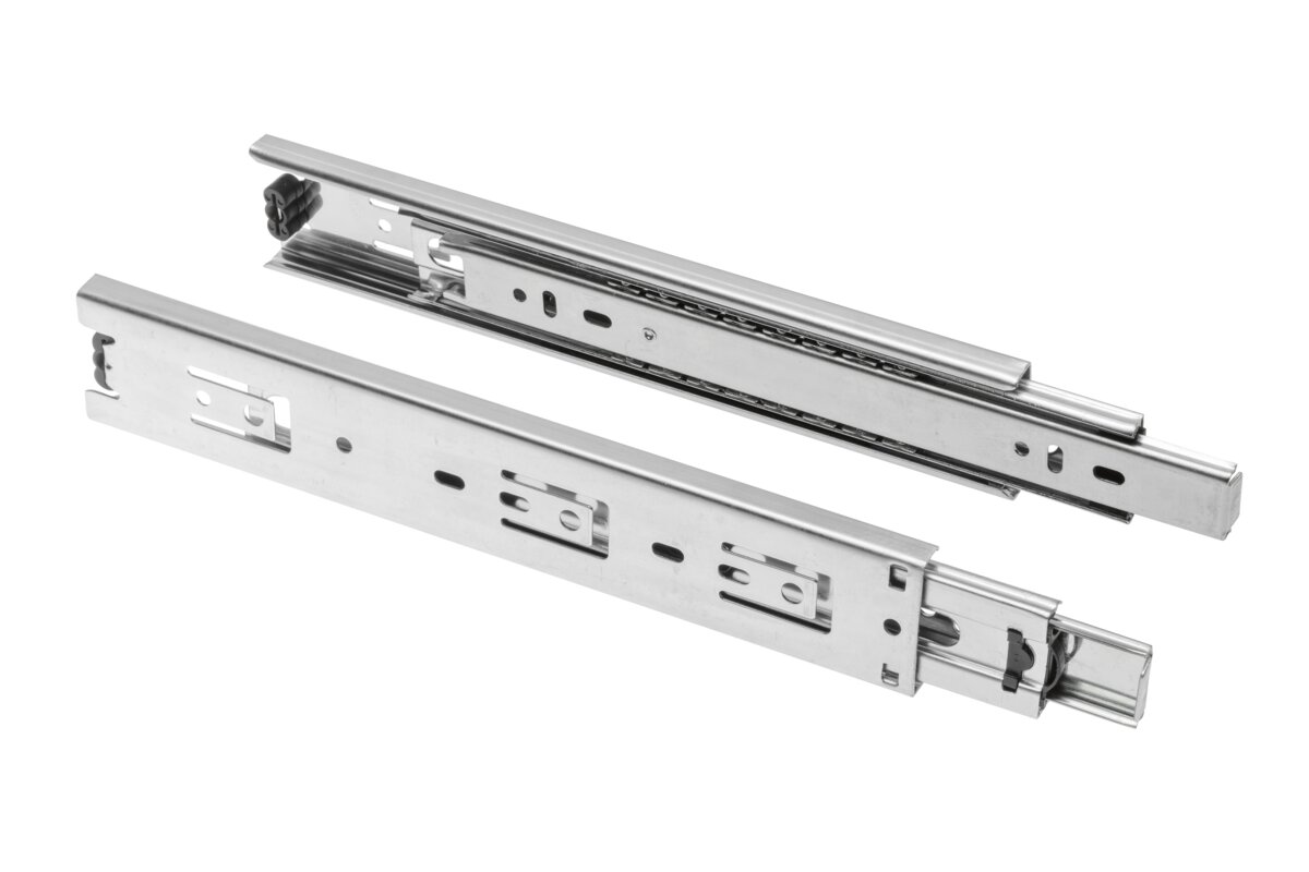 La glissière à billes universelle et certifiée H45 PRESTIGE vous permet de construire des tiroirs standard et internes. Il s’adapte à tous les types de tiroirs - étroits, larges, cuisine, bureau et atelier. Il convient de rappeler que pour le bon fonctionnement du tiroir, sa largeur ne doit pas dépasser la longueur nominale de la glissière. H45 PRESTIGE est disponible en plusieurs longueurs : 250, 300, 350, 400, 450, 500, 550, 600, 700 mm.