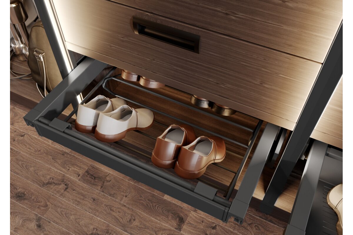 Tiroir à chaussures Elite 800 mm avec fermeture silencieuse, gris anthracite