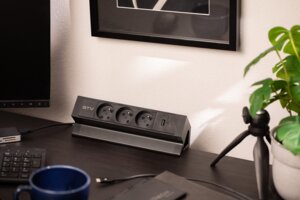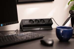 Utičnica za namještaj BASCO praktično je rješenje za stolove i stolove kod kuće i na poslu. Olakšava korištenje prostora, a njegov univerzalni dizajn uklapa se u mnoge aranžmane. Utičnica se montira na rub ploče stola debljine od 5 do 36 mm – bez potrebe za bušenjem. Opremljen s tri francuske utičnice i USB A i C priključcima, omogućuje vam istovremeno povezivanje različitih uređaja. Ima kabel od 1,5 m i dostupan je u klasičnoj crnoj boji, što ga čini diskretnim uklapanjem u većinu radnih prostora.