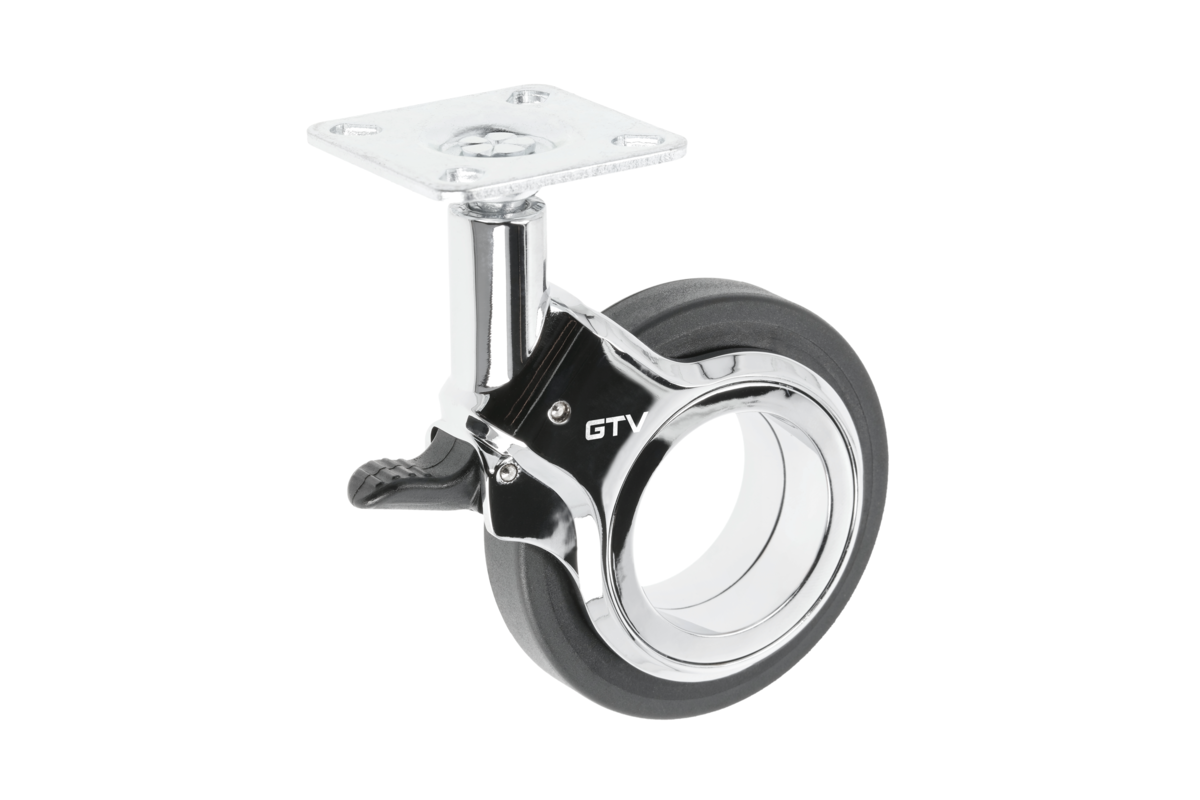 Valjak za namještaj GTV GIRA, H = 107 mm, dia75 mm, s kočnicom, plastikom + čelikom, crnom + kromom