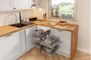 Magic Corner košare iz serije MOVIX PRO ergonomski su sustav za pohranu moderne kuhinje. Omogućuju vam maksimalnu optimizaciju teško dostupnih mjesta – tj. kuhinjskih kutova. Može se koristiti za pohranu lonaca, tava i kućanskih aparata (npr. mješalice, miješalice, sokovnici, parobrodi itd.).