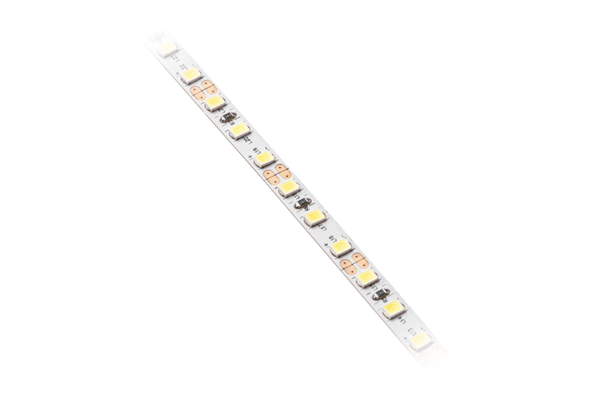 Važan parametar LED traka je gustoća rasporeda dioda. Što su gušće poredane, to će se dobiti ravnomjernija linija svjetla. U ovom slučaju, 600 dioda je raspoređeno po cijeloj dužini trake, odnosno 120/m.