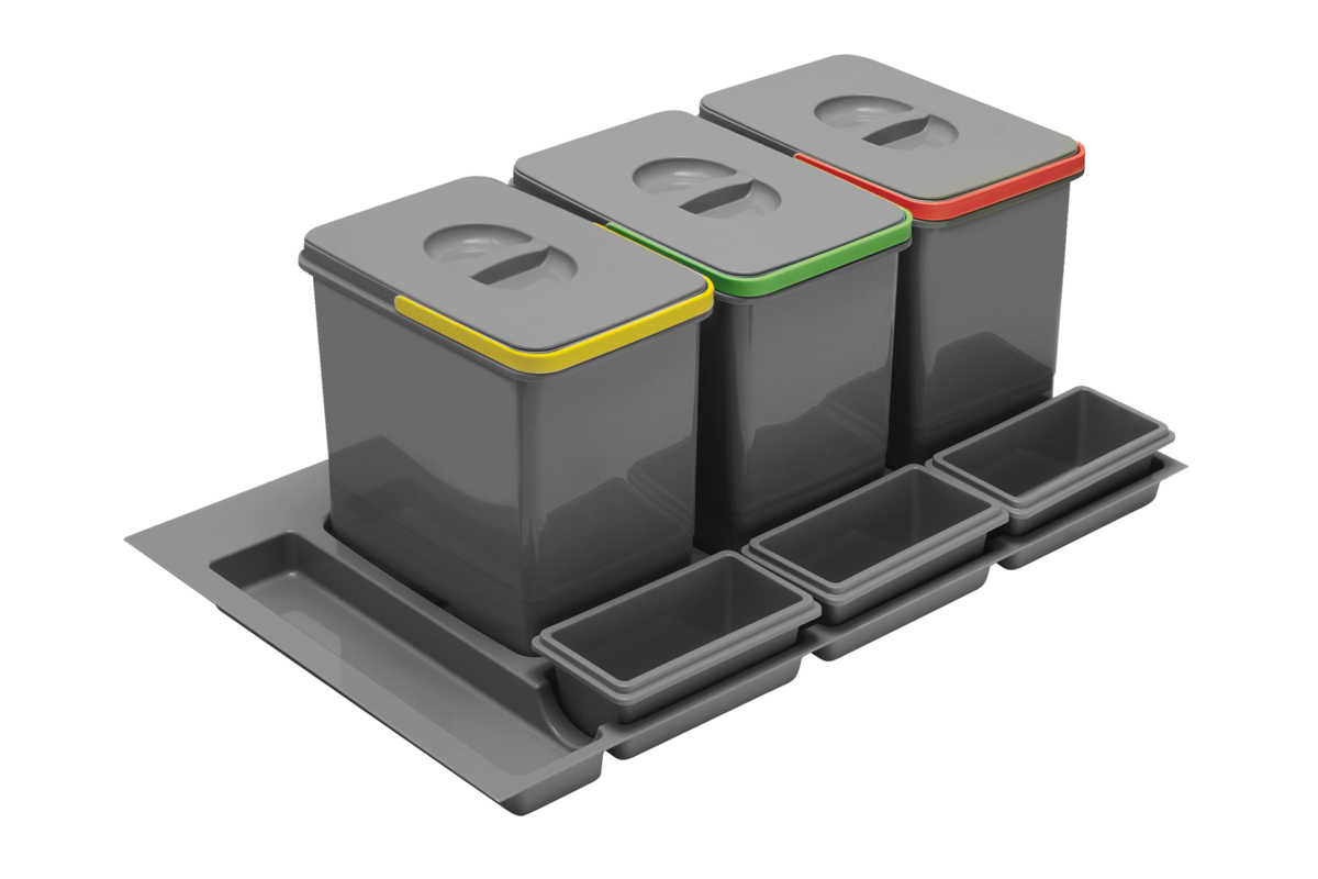 Briga za okoliš postaje lakša kada imamo pri ruci pravi pribor. Multino univerzalna veziva, kapaciteta 15 litara, dizajnirana su za uporabu kod kuće i u uredu, gdje olakšavaju odvajanje smeća i otpada. Kodiranje u boji poklopaca pomoći će razlikovati pojedinačne kante i dodijeliti ih određenom otpadu: m.in. staklo, papir, plastika. Multino košare, u modernoj antracit boji, savršeno se uklapaju u ladice Modern Box i Axis Pro. Njihova dodatna prednost je mogućnost podrezivanja postolja. Na taj ćemo način cijeli set prilagoditi dimenzijama svake velike ladice. Ponuda uključuje setove koji se sastoje od košara i složenaca, a namijenjeni su vrećama za smeće, sredstvima za čišćenje, kućnim kemikalijama ili lopatici četkom. Takav skup osigurava red na mjestu gdje je održavanje čistoće svaki dan pravi izazov.