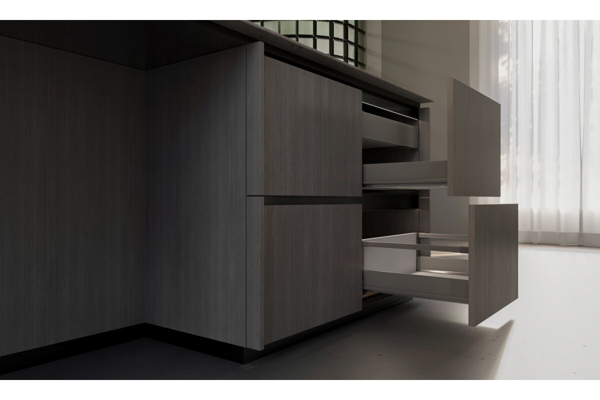 - 4 varijante visine (84, 135, 167, 199 mm) za višenamjenske ladice za upotrebu s ugradbenim i preklopnim frontama;
