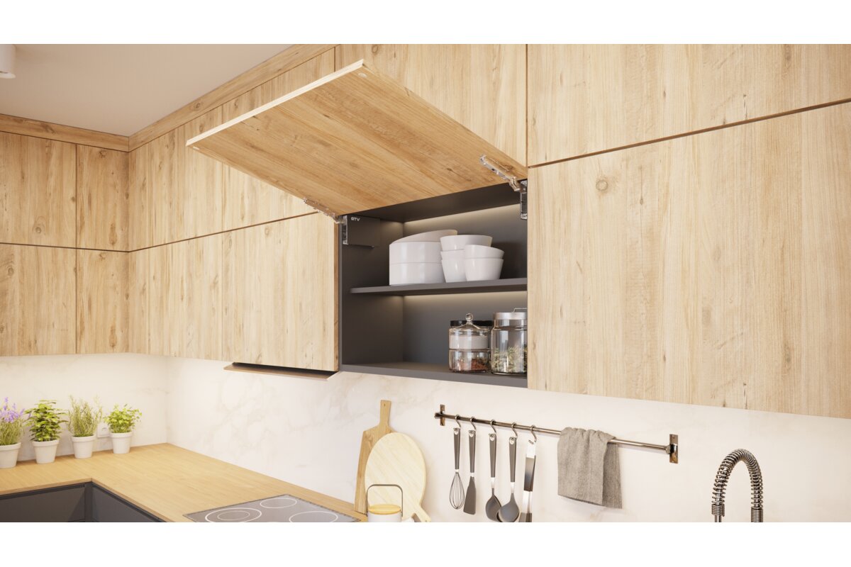 Mehaničko dizalo koje olakšava dizajniranje funkcionalnih i modernih zidnih ormara. Dostupno u dvije verzije, mekano zatvaranje i guranje za otvaranje. Omogućuje glatko kretanje i jastuk pri zatvaranju ormara. Omogućuje zaustavljanje preklopa u bilo kojem položaju koji postavi korisnik. Ima čak 3 vrste podešavanja: silu, vrijeme zatvaranja i kut otvaranja u rasponu od 90 ° do 105 °. Dizalo će se koristiti u zaklopkama visine od 300 mm do 650 mm. Izbor do četiri varijante opružne čvrstoće prilagođene visini i težini prednjeg dijela omogućuje širok raspon primjena. Postoje 3 varijante boja krajnjih kapica: bijela, antracit i crna. Jednostavna instalacija, bez upotrebe dodatnih predložaka ili mjerenja, gdje je konstrukcija dizala također njegov predložak montaže.