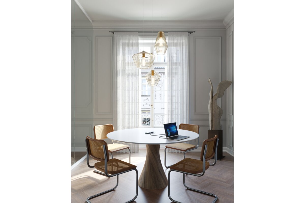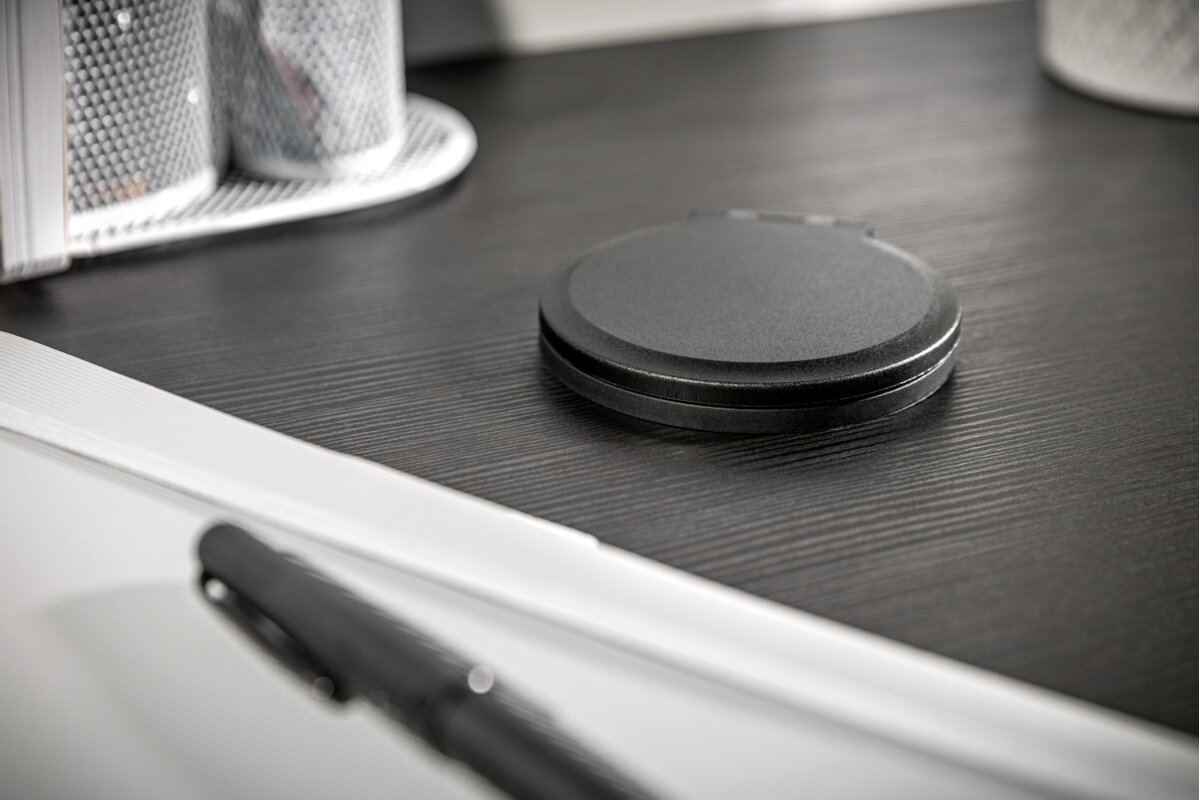 Łatwe w użytkowaniu, minimalistyczne gniazdo Charger Plus przeznaczone jest do wszelkiego rodzaju biurek i blatów np. kuchennych. Charakteryzuje się bardzo niskim elementem montażowym. Charger Plus wyposażony jest w ładowarkę indukcyjną zamieszczoną w wewnętrznej części pokrywy – aby naładować telefon, trzeba uchylić klapę. Posiada trzy wymienne gniazda, które czynią z niego uniwersalne rozwiązanie do strefy coworkingowej.