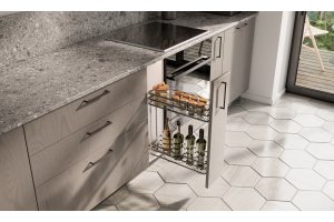 Seria MOVIX została zaprojektowana z myślą o stworzeniu praktycznej spiżarki w zabudowie kuchennej - idealnej do przechowywania butelek, przypraw i akcesoriów kuchennych, które warto mieć zawsze pod ręką. Kosze cargo MOVIX pasują do szafek o szerokościach zewnętrznych: 150, 200, 250 i 300 mm. Wysoka jakość wykonania i dopracowane detale zapewniają trwałość, stabilność, wygodny dostęp do produktów oraz estetyczny wygląd, doskonale komponując się z nowoczesną zabudową kuchenną. Maksymalne obciążenie wynosi 15 kg, co czyni je niezawodnym rozwiązaniem również przy intensywnym użytkowaniu.