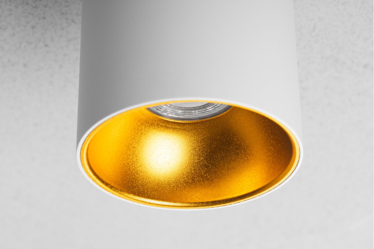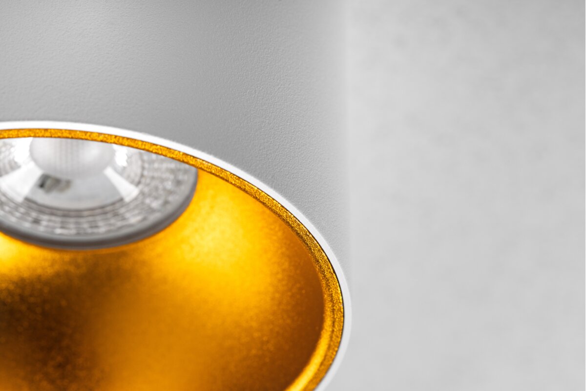 Sufitowe tuby od wielu sezonów królują w nowoczesnych wnętrzach. Złote wykończenie w będzie subtelnym dopełnieniem wnętrz loftowych i glamour.