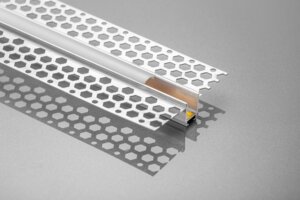 Profil architektoniczny GLAX przeznaczony jest do montażu w zabudowie kartonowo-gipsowej. W zestawie znajduje się osłonka techniczna, której zadaniem jest ochrona wnętrza profilu podczas prac wykończeniowych, takich jak szpachlowanie czy malowanie. Osłonka finalna, zakładana po zakończeniu prac malarskich, dostępna jest jako osobny element – nie wchodzi w skład podstawowego zestawu.