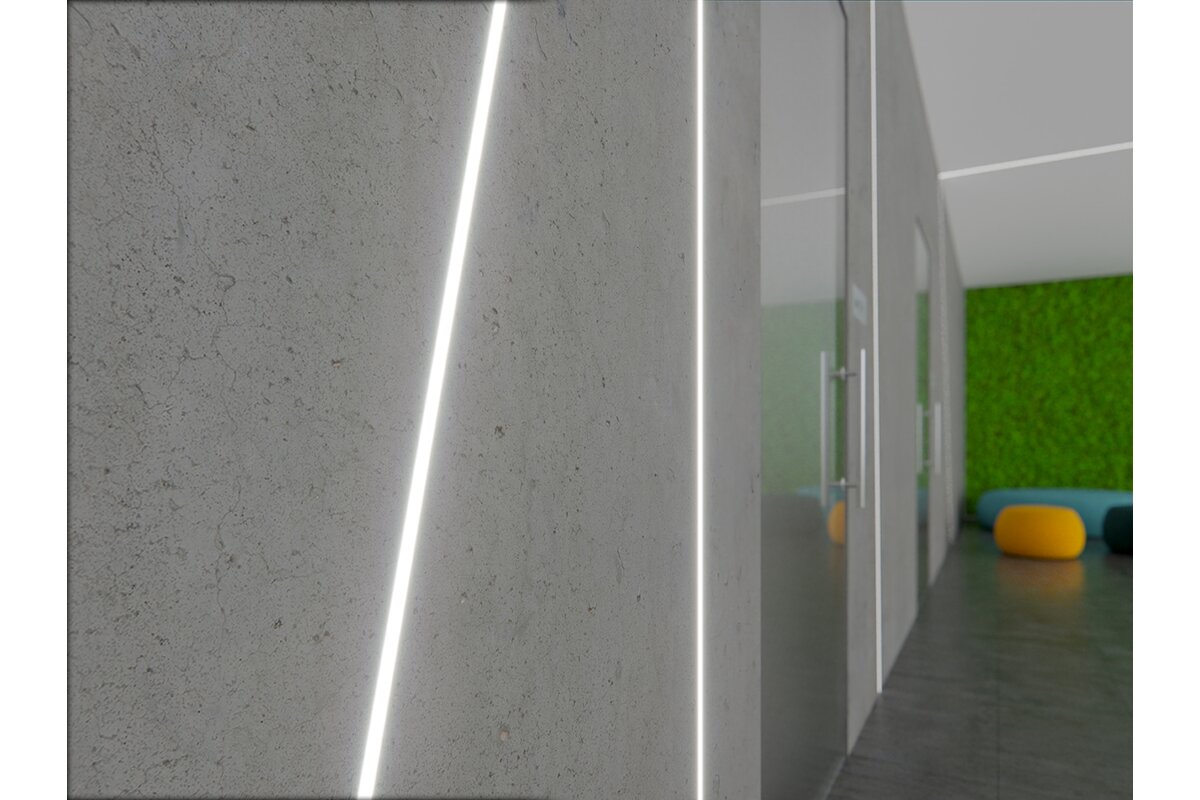 Profil tworzy spójną, liniową iluminację. Dzięki specjalnym łącznikom – poziomym i pionowym – możliwe jest płynne prowadzenie linii świetlnej w różnych kierunkach, zarówno w poziomie, jak i w pionie.