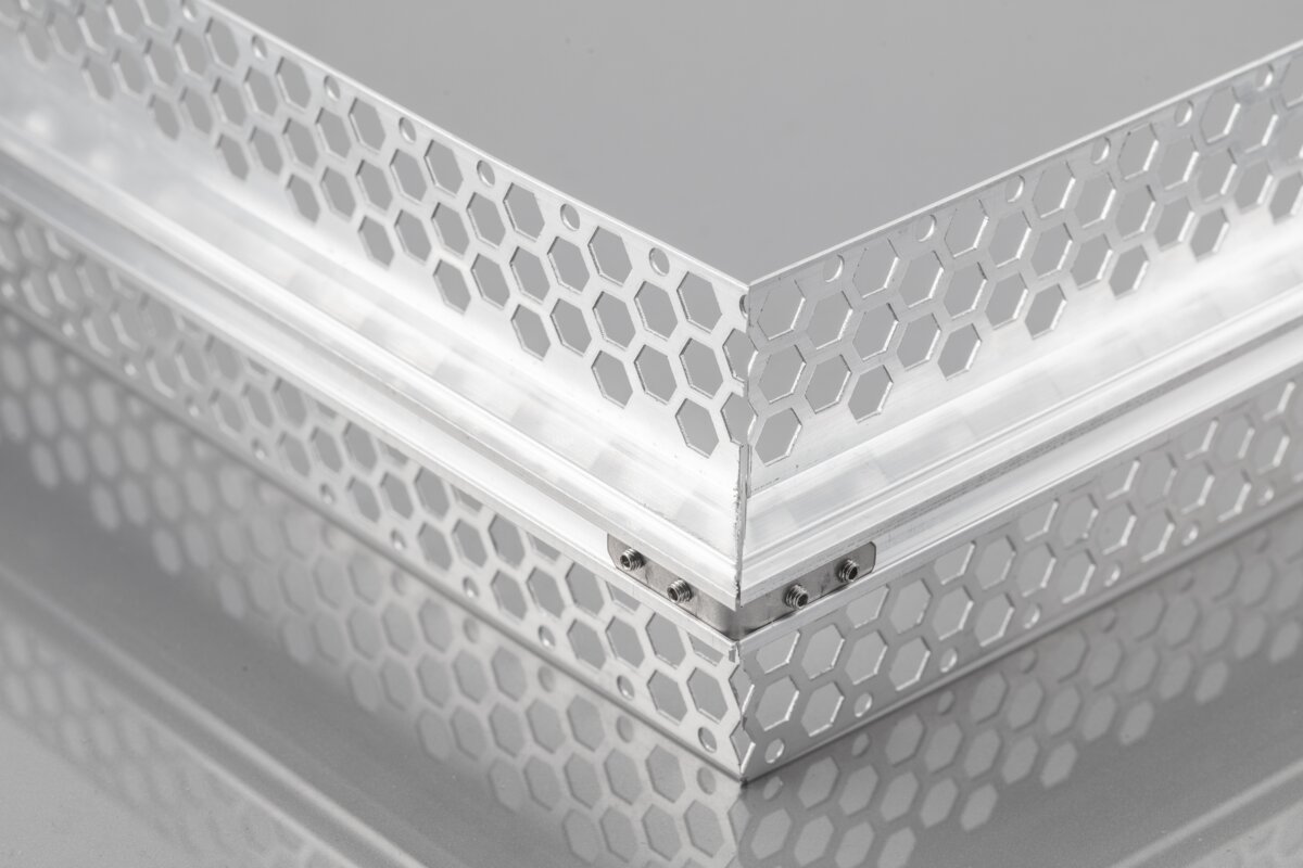 Profil architektoniczny GLAX przeznaczony jest do montażu w zabudowie kartonowo-gipsowej. W zestawie znajduje się osłonka techniczna, której zadaniem jest ochrona wnętrza profilu podczas prac wykończeniowych, takich jak szpachlowanie czy malowanie. Osłonka finalna, zakładana po zakończeniu prac malarskich, dostępna jest jako osobny element – nie wchodzi w skład podstawowego zestawu.