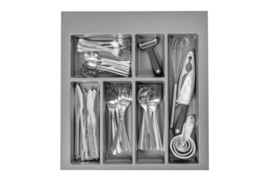 Wykonane z wysokiej jakości tworzywa wkłady do szuflad Axispace pozwalają efektywnie zagospodarować wnętrza szuflad kuchennych. Dzięki specjalnym podziałkom mamy możliwość odpowiedniego posegregowania i uporządkowania łyżek, noży, widelców i innych przydatnych akcesoriów kuchennych. Efekt wizualny to jednak nie jedyna zaleta tego produktu. Wkłady do szuflad są bardzo pojemne i praktyczne oraz pozwalają mieć wszystko w zasięgu ręki, co jest niezwykle istotne dla każdej osoby zajmującej się gotowaniem. W ofercie dostępne są segregatory o różnej wielkości (340-840 mm).