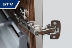 Zawias GTV HCKT, nakładany, kątowy, 155 st, H=0, cichy domyk, two way, prowadnik, clip-on, bez euro