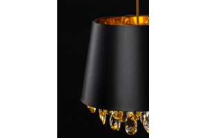 Lampa wisząca NESTO to prawdziwa kwintesencja stylu glamour. Dostępna w trzech wersjach kolorystycznych: czarno/złotej, kremowej oraz brązowej, umożliwia dopasowanie do różnorodnych wnętrz. Jej subtelny kształt to idealne dopełnienie każdego pomieszczenia, lampa NESTO dodaje mu wytworności i prestiżu. Wykorzystanie kryształków zapewnia pięknie odbijające się refleksy, które dodają lampie wyjątkowego blasku. Lampa wisząca NESTO jest idealna do zastosowania w salonach czy sypialniach, zapewniając równomierne i eleganckie oświetlenie.