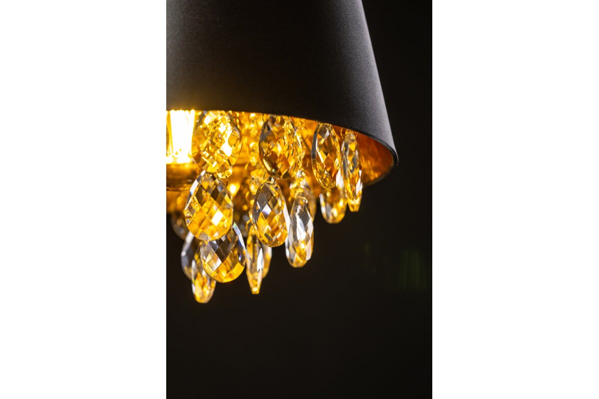 Lampa wisząca NESTO to prawdziwa kwintesencja stylu glamour. Dostępna w trzech wersjach kolorystycznych: czarno/złotej, kremowej oraz brązowej, umożliwia dopasowanie do różnorodnych wnętrz. Jej subtelny kształt to idealne dopełnienie każdego pomieszczenia, lampa NESTO dodaje mu wytworności i prestiżu. Wykorzystanie kryształków zapewnia pięknie odbijające się refleksy, które dodają lampie wyjątkowego blasku. Lampa wisząca NESTO jest idealna do zastosowania w salonach czy sypialniach, zapewniając równomierne i eleganckie oświetlenie.