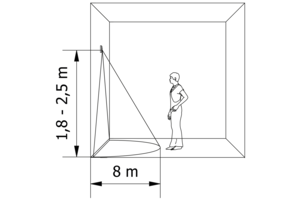 - Максимальная высота монтажа: Оптимальные результаты обнаружения достигнута, когда датчик установлен на высоте от 1,8 до 2,5 метров.