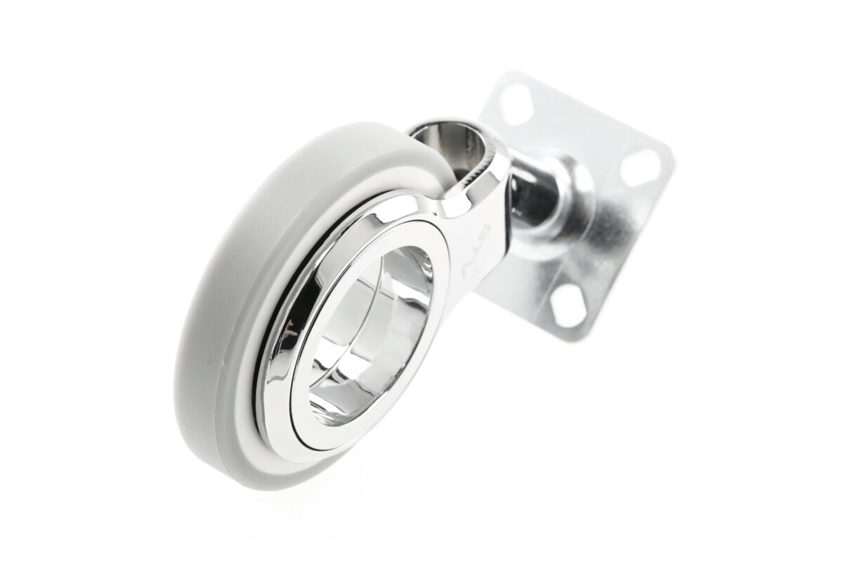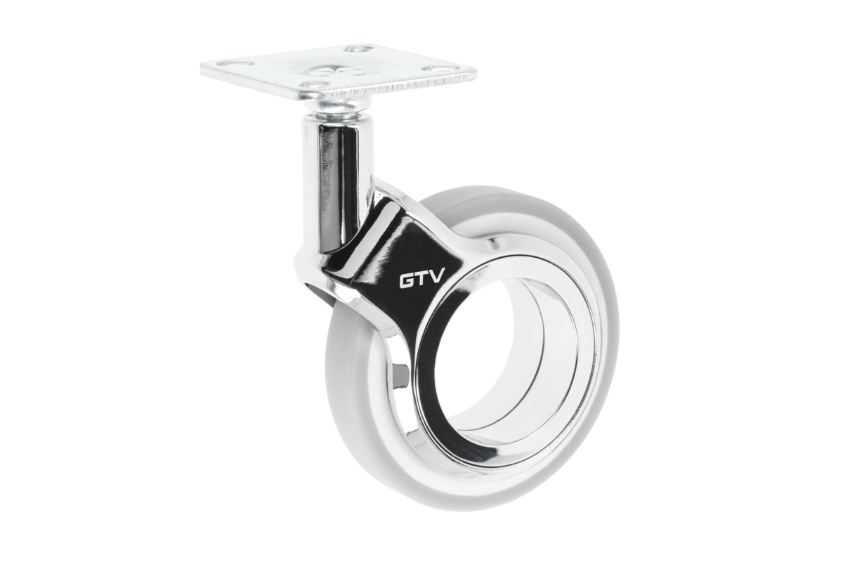 Мебельный ролик GTV GIRA, H=107 мм, dia75 мм, без тормоза, пластик+ сталь, хром + серый матовый
