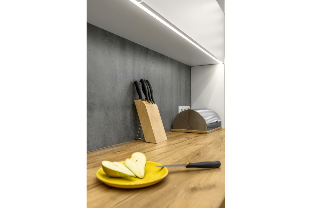 Мини, высокий профиль позволяет получить четную линию света без видимых точек света даже при использования рулетки с не очень густым размещением светодиодов.