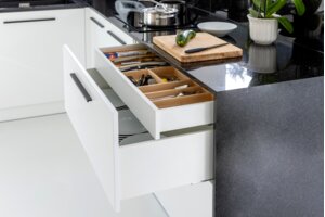 Удобный и практичный ящик Axis Pro под духовку для кухонных принадлежностей. Благодаря использованию тонких боковых стенок ящик стал легким и элегантным. Монтаж корзины карго - это эргономичное решение для любой кухонной мебели.