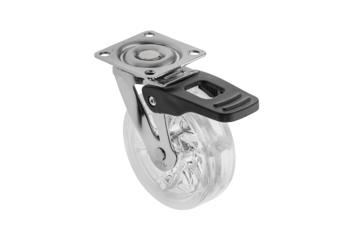 Otočný valec SHIFT 75 s brzdou z ocele, polykarbonátu (PC) a polyuretánu (PU). K dispozícii v dvoch farebných variantoch s priemerom 75 mm. Valčeky sú praktické doplnky, ktoré poskytujú oporu pre nábytok, ako sú stolové skrine, stoly, televízne police, pufy a iný ľahký nábytok, ktorý je potrebné presunúť. Valčeky zabraňujú poškriabaniu podlahy, nepoškodzujú zem, tlmia vibrácie a tiež umožňujú rýchly pohyb nábytku. Kolesá vydržia zaťaženie až 40 kg. Otočná rukoväť valca umožňuje pohyb v mnohých smeroch, umožňuje plynulé otáčanie o 360 stupňov pri zaťažení.